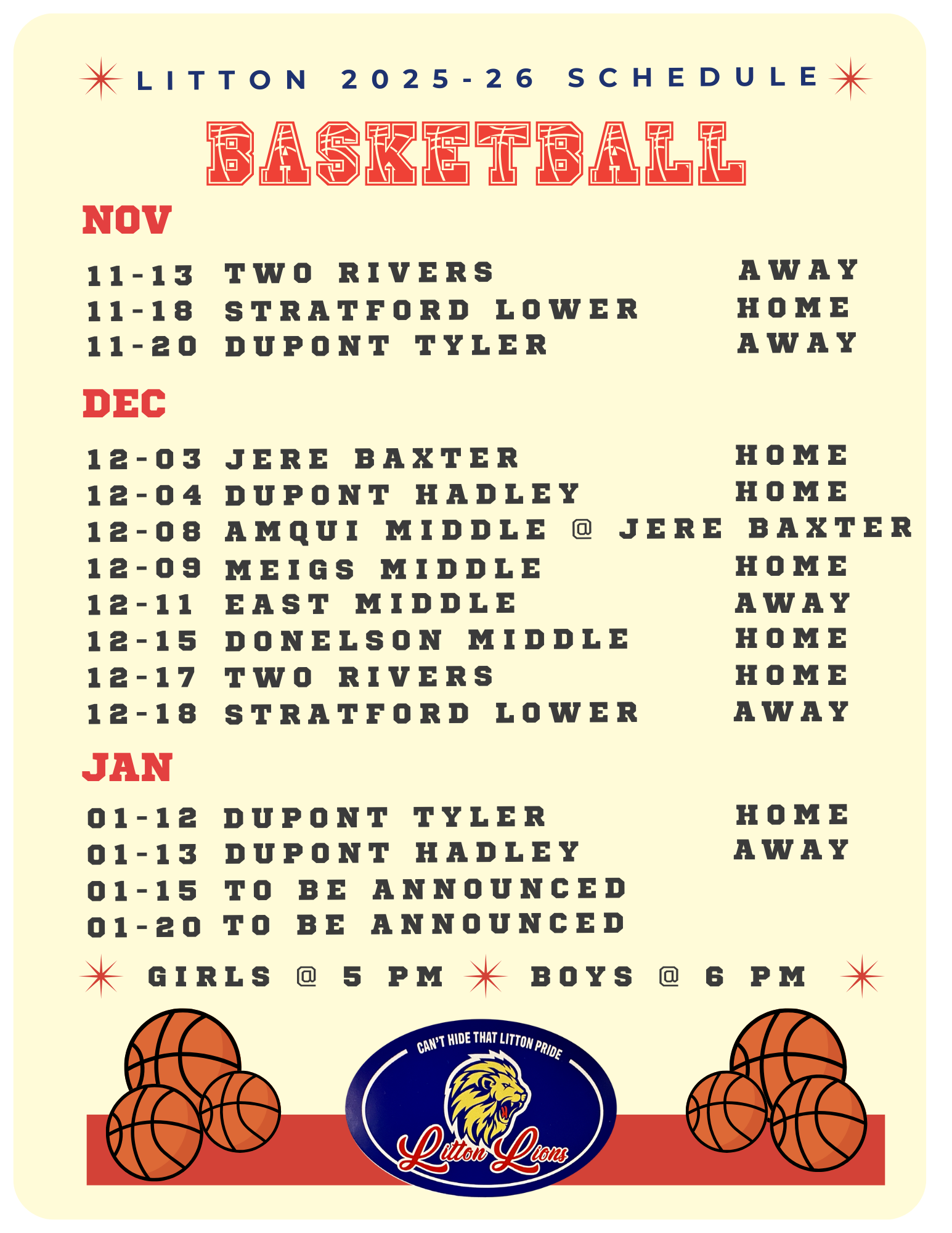 Basketball Schedule